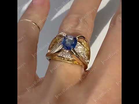 This elevated sapphire ring shines at your fingertips. The sparkling main stone is like the brightest star in the night sky, exuding a fascinating fire, accompanied by fine sapphires and delicate gold ornaments underneath, every detail speaks of luxury and romance, as if waiting for an eternal appointment.