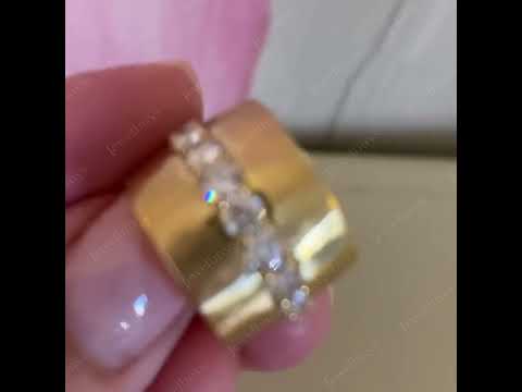 This custom-designed gold-plated ring features a sapphire-encrusted band surrounding the center stone. The gold surface has a softly brushed finish with a subtle hammered texture. Its timeless elegance is the perfect inspiration for this piece. 🩷