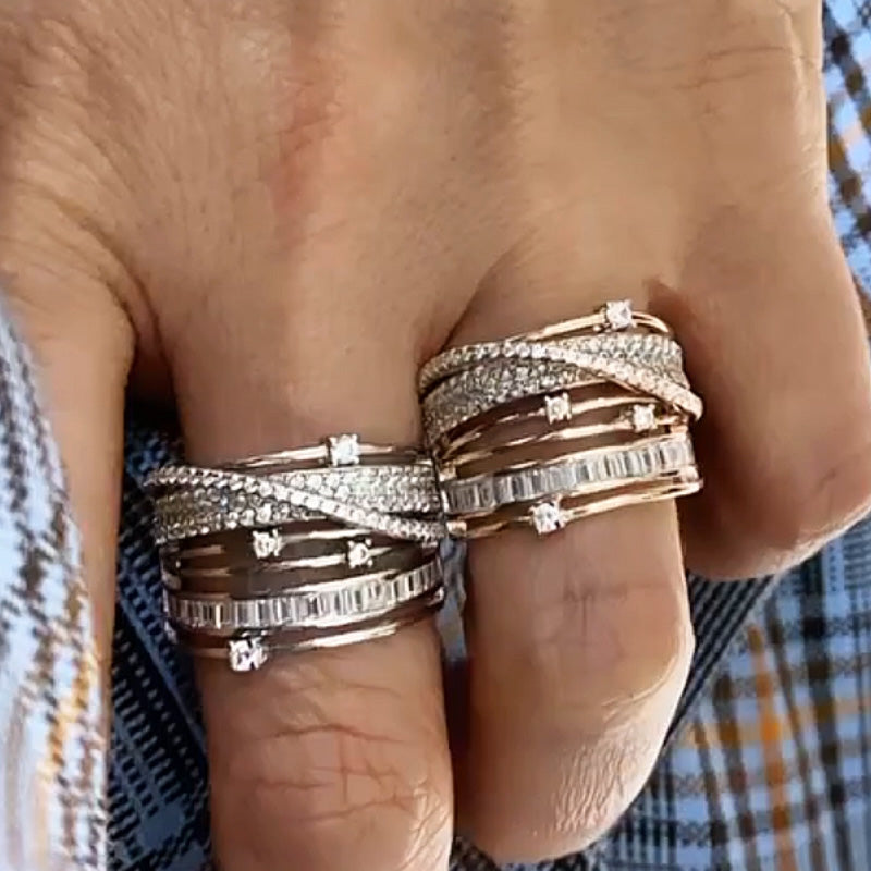 The stacked rings on your fingertips are a carnival of sparkle. The metal lines are intertwined, the sapphires are scattered like stars, and each layer hides a different story, encircling the exquisiteness and personality in this small space. Wearing it is your own fashion code.
