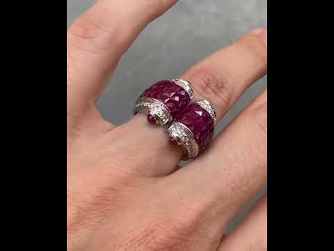 A 3.50-carat invisible ruby ring surrounded by sapphires, a super cool cocktail ring.