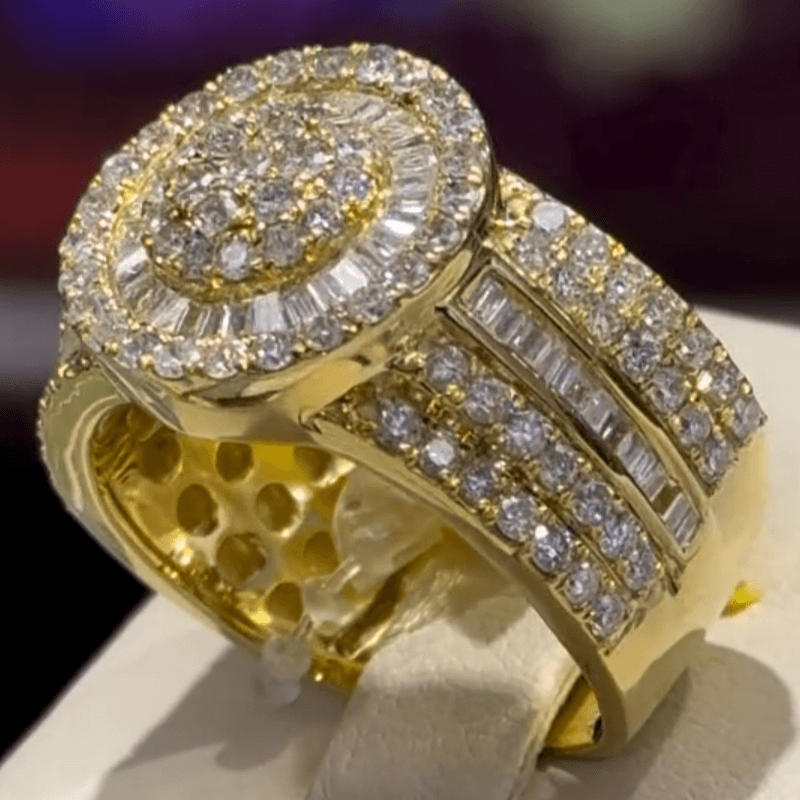 Ideal for marking your eternal commitment, the "3.75ct Round & Baguette Cut White Sapphire Engagement Ring" is a beautiful symbol of love and dedication. Whether for an engagement or a special anniversary, this ring is sure to captivate with its stunning beauty and sophisticated charm, making it a cherished piece in any jewelry collection.This ring promises to be a timeless addition to your collection, perfect for celebrating life's most important moments.