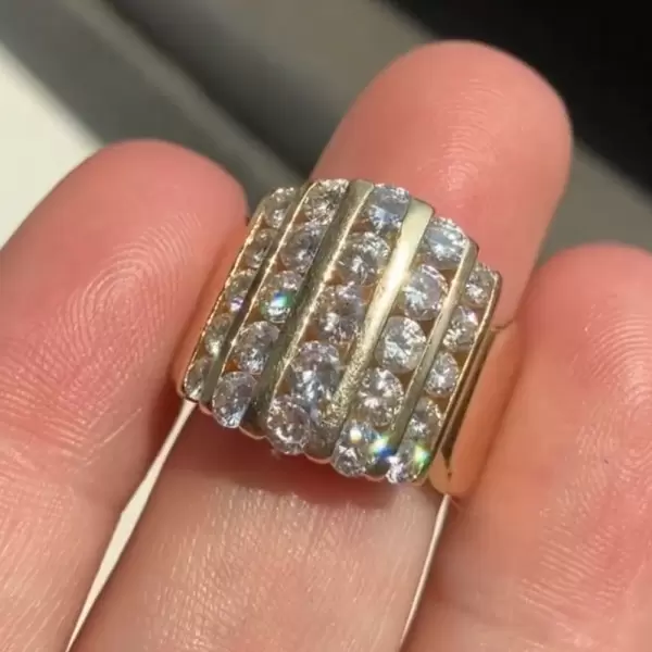 3ct Channel Set Round Cut Gold Tone Wide Wedding Band-JEWELBUYS