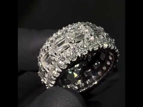 This stunning men's ring features a total of 3 carats of emerald cut and round cut white sapphires, set in a sleek and modern eternity band design. The combination of emerald cut and round cut sapphires offers a brilliant and multifaceted sparkle, creating a look that is both elegant and masculine.