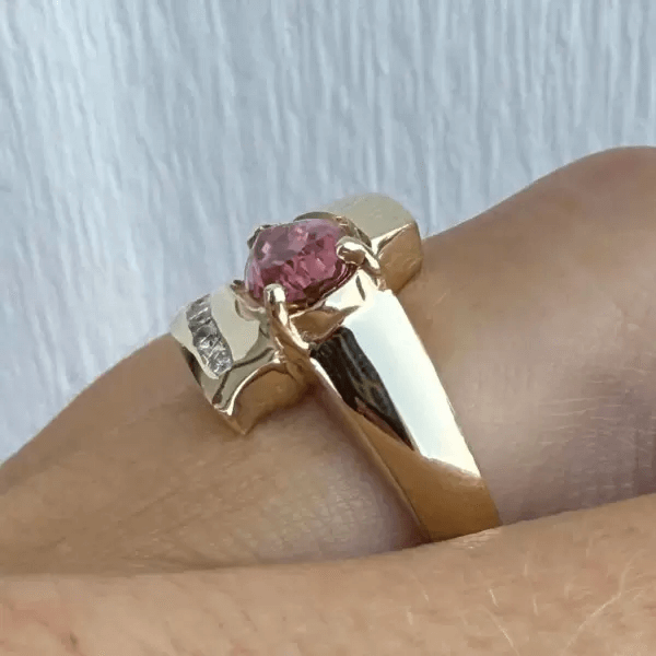 3ct Pear Cut Pink Tourmaline Channel Set Ring in Gold-JEWELBUYS