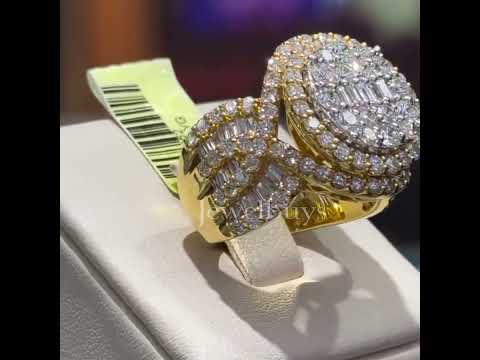 4.05ct Round & Baguette Cut White Sapphire Gold Ring-JEWELBUYS