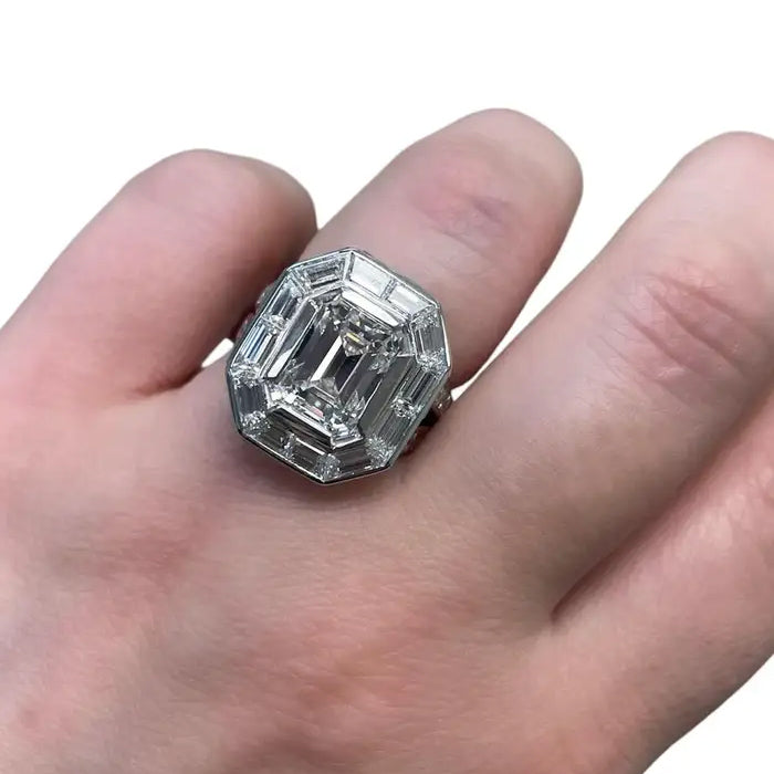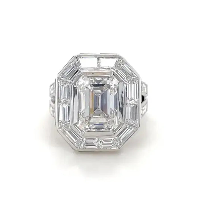 This exquisite ring showcases a stunning 4.06-carat emerald-cut white sapphire, known for its unique step-cut facets that highlight the gemstone's clarity and depth. Set in luxurious platinum, the ring offers a classic yet contemporary design that exudes sophistication. The emerald cut adds an air of vintage charm while providing a sleek, modern look. Perfect for celebrating eternal love and commitment, this engagement ring combines exceptional beauty with refined style, making it a cherished symbol of your special bond.