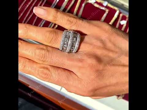 4.22 Ctw Baguette and Round White Sapphire Multi-Row Ring-JEWELBUYS