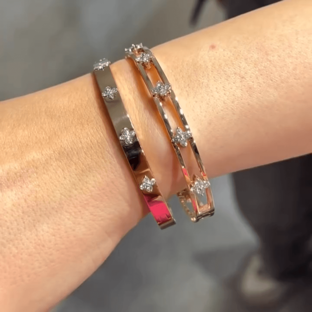 Embrace timeless elegance with this exquisite bracelet which features a series of 4-carat oval cut white sapphires, each set within charming four-leaf clover motif, crafted in lustrous rose gold. The oval cut sapphires offer a sophisticated brilliance, while the four-leaf clover design symbolizes luck and happiness, making this bracelet not only a fashionable accessory but also a meaningful one. Perfect for adding a touch of luxury and symbolism to any outfit, this bracelet is designed to be a cherished piece that reflects both style and sentiment.