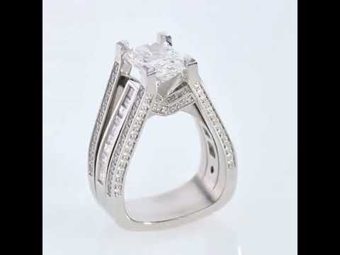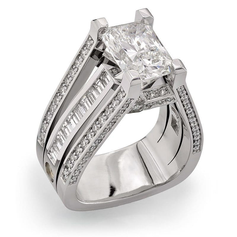 5.01ct Radiant Cut Triple Row White Sapphire Engagement Ring-JEWELBUYS
