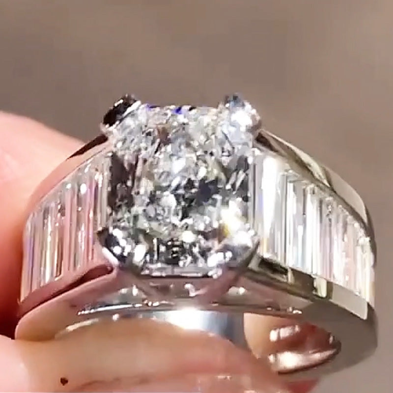 5.03ctw Radiant and Baguette Cut Brilliant Engagement Ring-JEWELBUYS