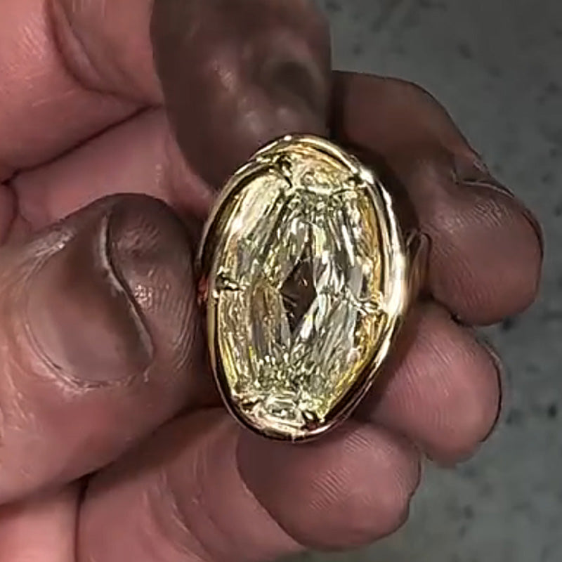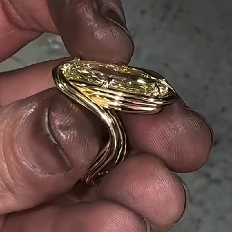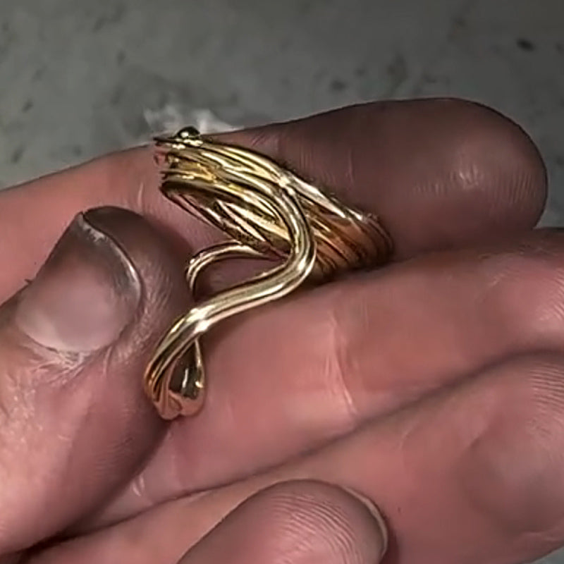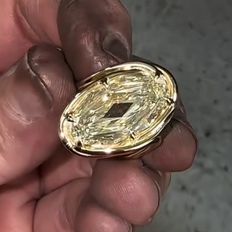 This ring is pure perfection. The entire ring is composed of a single, uninterrupted line that tapers and diverges, creating a wavy curve that beautifully balances the weight and size of this unique sapphire. Due to the size and expansiveness of the stone, this piece required several attempts to achieve. I chose a six-prong setting, as I felt it best complemented the sapphire's unique cut. As always, this piece is one-of-a-kind and entirely handcrafted.