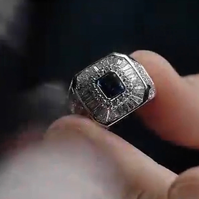 5.0Ctw Octagonal Cut Blue Stone Men's Engagement Ring-JEWELBUYS