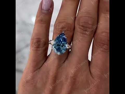 5.0Ctw Pear Cut Blue Birthstone Ring-JEWELBUYS