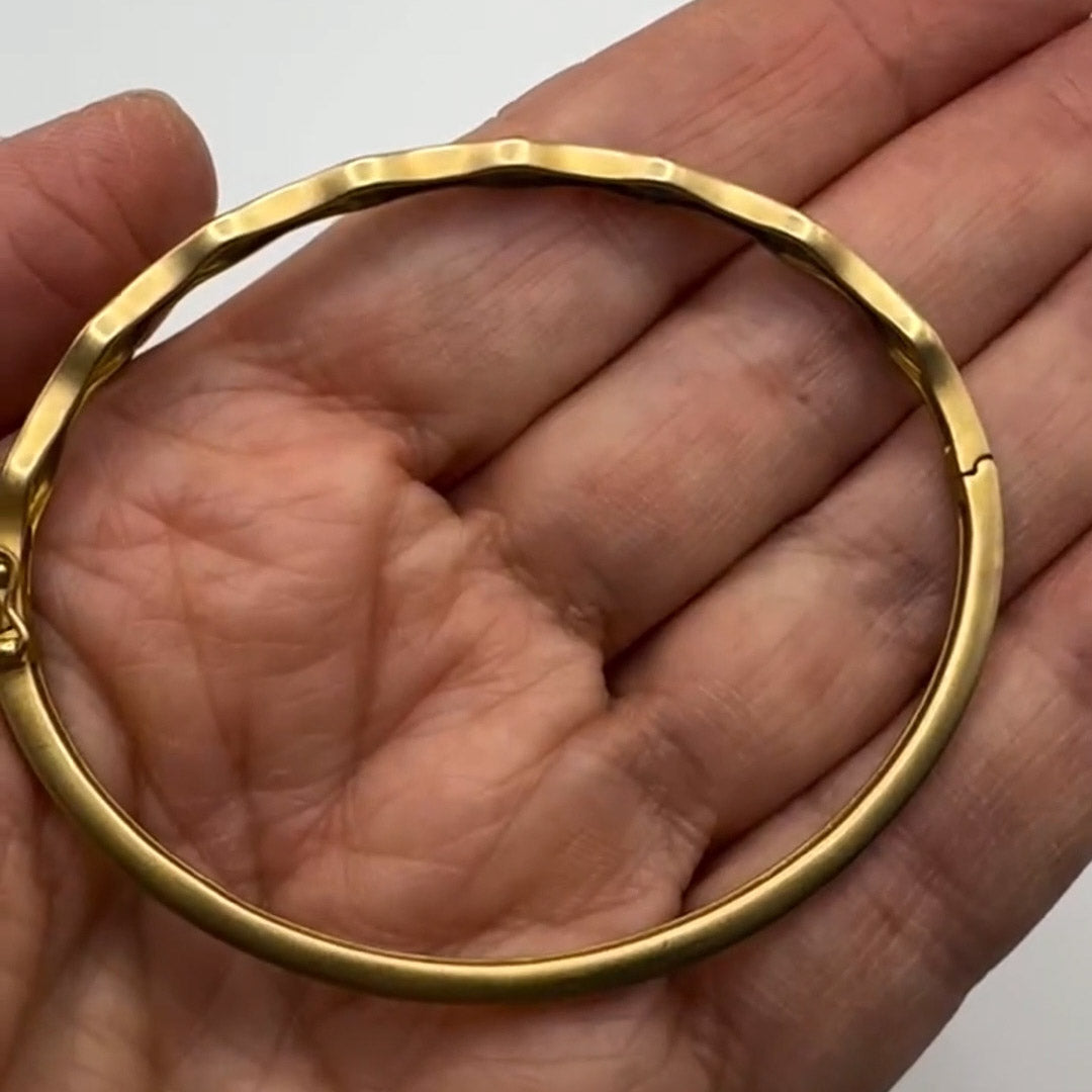 This bracelet is a blend of sophistication and elegance. The smooth golden lines undulate, and the sapphires are as deep as a tranquil pool. Lying quietly in the palm of your hand, it seems to speak of understated luxury, and when worn on the body, it is a sparkling footnote to everyday life.