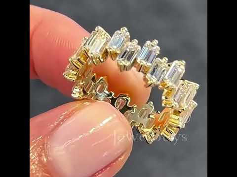 In the fantasy world of jewelry, the baguette cut gear arrangement eternity ring is like a fine work of art, exuding a unique and fascinating charm. With its regular lines and atmospheric style, it shows a simple and noble beauty.