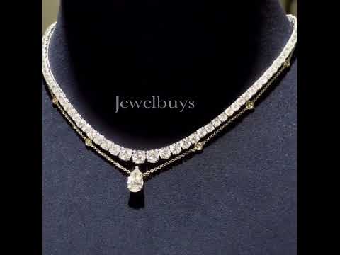 50ctw Round Cut Tennis Necklace With Pear Shaped Pendant Necklace-JEWELBUYS