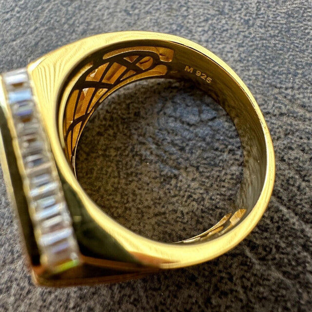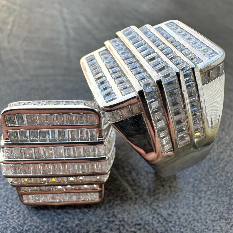 This contemporary men's ring features a bold 5-carat baguette cut white sapphire, set in a design that seamlessly blends the warmth of gold with the cool elegance of silver. The baguette cut offers a sleek and modern look, making this ring a perfect accessory for the contemporary gentleman. Whether it's for a special occasion or to add a touch of luxury to your daily attire, this ring is designed to reflect your unique taste and timeless elegance with its sophisticated blend of materials and cutting-edge design.