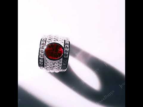 This ring is made of S925 silver, sapphire and clear lab sapphire and is set with an extraordinary beautiful oval ruby over 5 Ct. Clear lab sapphire setting and princess square cut sapphire. Full of innovation and passion.