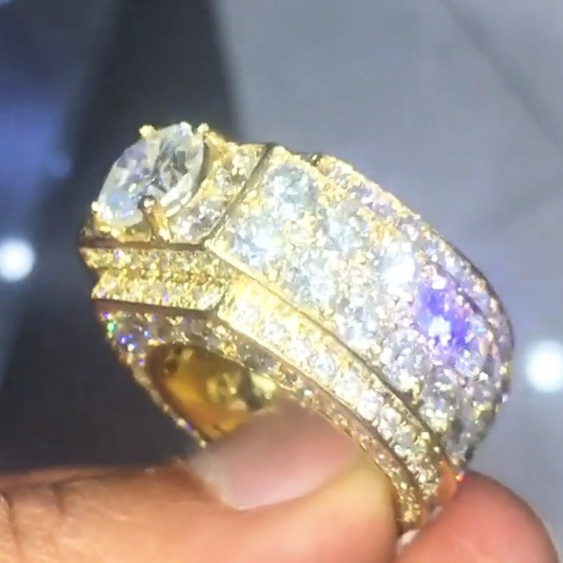 This ring is a collection of starlight tempered by time. The main stone is like the brightest beam of light at dawn, and the gravel on the side is like stardust scattered from the Milky Way, weaving a dazzling net on the gold setting. Wearing it, you are holding not only the glitter, but also the highlight moment that belongs to you.