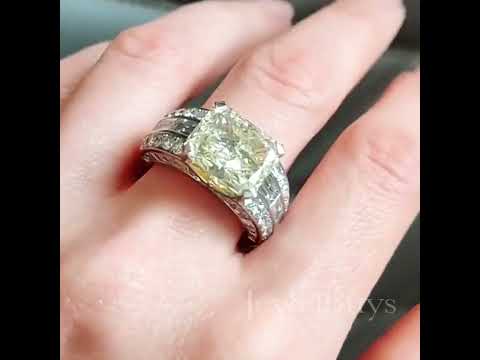 This is really going to give beautiful design. The pale yellow radiant center is the sparkle is stunning. The shoulders are set with round and emerald cut gemstone accents that are dazzling.