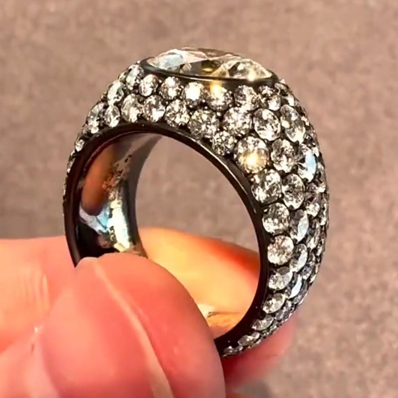 Clustered with sparkling sapphires, this ring is a symbol of luxury and glamour, with every flash of light, it speaks of a unique fashion attitude.