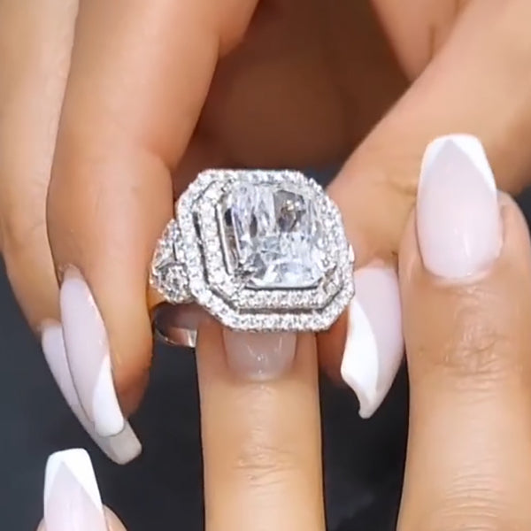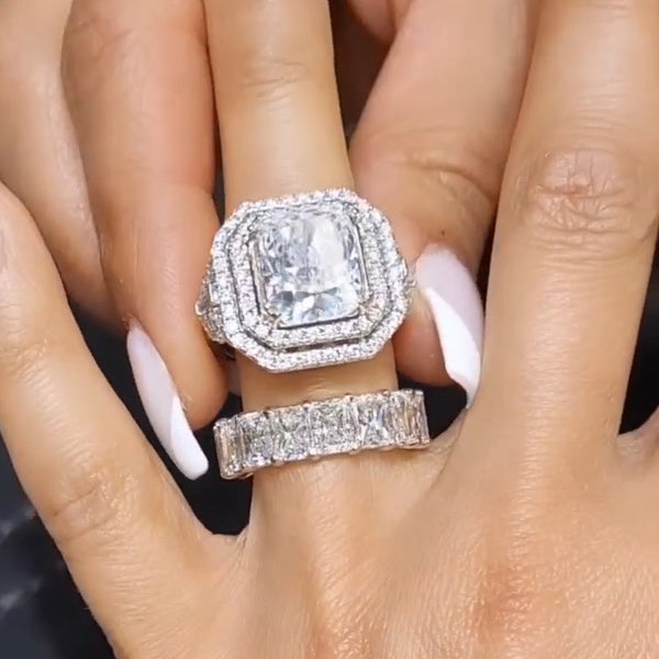 7ct Radiant Cut Bold Ring and Eternity Band -JEWELBUYS