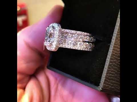 8.08ctw elongated cushion cut double halo sapphire engagement ring-JEWELBUYS