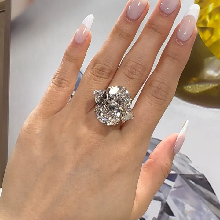 8.85Ctw Oval Heart-Shaped Three Sapphire Engagement Ring-JEWELBUYS