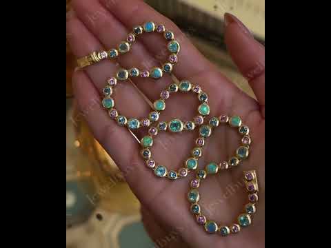 There's a tennis ball necklace, and also unique tourmaline, sapphire, Montana sapphire, aquamarine bubble tennis ball necklace... 💙💧 When I look at her, all I can think of is summer—blue skies, shimmering ocean, and starry nights! 🌌