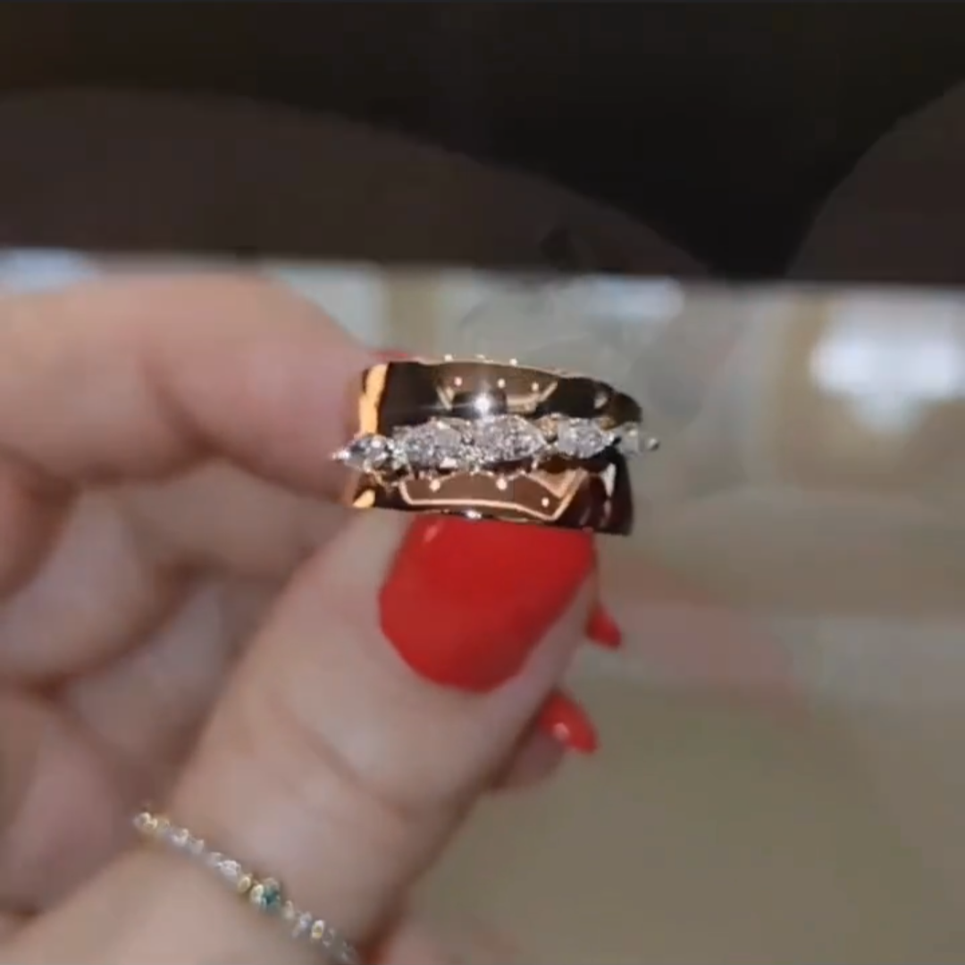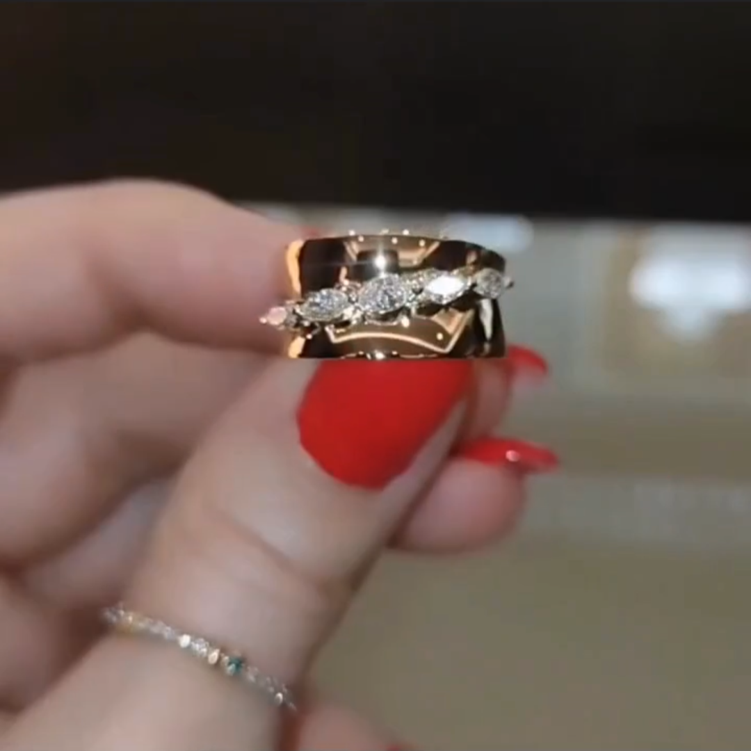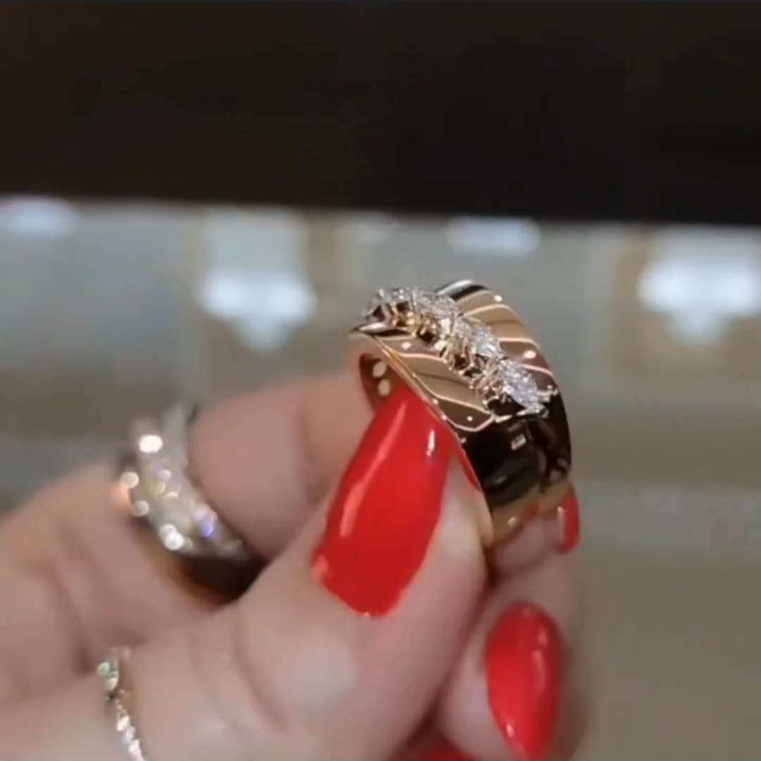 Celebrate your timeless love with this Classic Band from JEWELBUYS. This elegant engagement ring features stunning 1-carat round cut white sapphires set in a wide band crafted from lustrous rose gold. The wide band design offers a modern and substantial presence, making it a bold yet classic choice for your wedding or engagement ring. The combination of the brilliant white sapphire and the warm hue of rose gold creates a ring that is both sophisticated and chic. Perfect for the woman who appreciates a blend of traditional elegance with a contemporary twist, this ring is designed to symbolize your everlasting commitment with timeless grace.