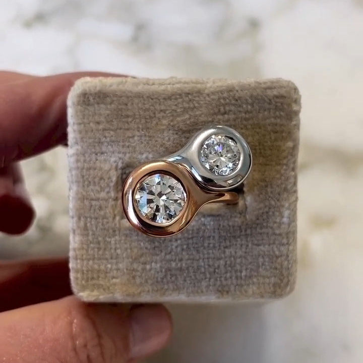 This exquisite 2.5ct round cut white sapphire ring for women is a breathtaking blend of rose gold and silver. The centerpiece, a dazzling white sapphire, sparkles with 1.5ct in the rose gold and 1ct in the white gold, surrounded by a stunning contrast of warm rose gold and crisp silver. Perfectly crafted for everyday wear or special occasions, this ring exudes elegance and sophistication.