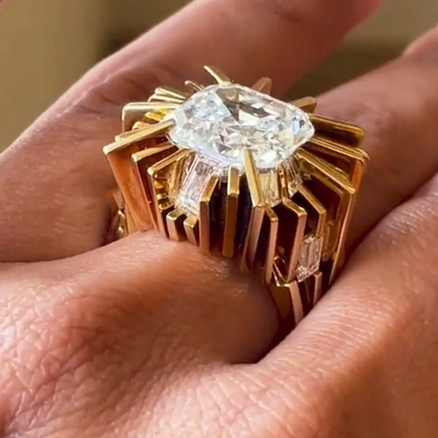 Discover the timeless beauty of the Feminine 4ct Asscher Cut White Sapphire Women's Engagement Ring in Gold, a stunning piece of jewelry designed to captivate and enchant. This engagement ring features a breathtaking 4-carat Asscher-cut white sapphire at its center, showcasing its exceptional clarity and radiant sparkle. Crafted from high-quality gold, this ring is designed to fit comfortably on the finger and features a delicate, feminine band that complements the central gemstone perfectly. Whether you're proposing to the love of your life or treating yourself to a special piece of jewelry, this engagement ring is sure to make a lasting impression. With its unique Asscher-cut design and luxurious gold finish, this ring is a true masterpiece of craftsmanship and elegance.