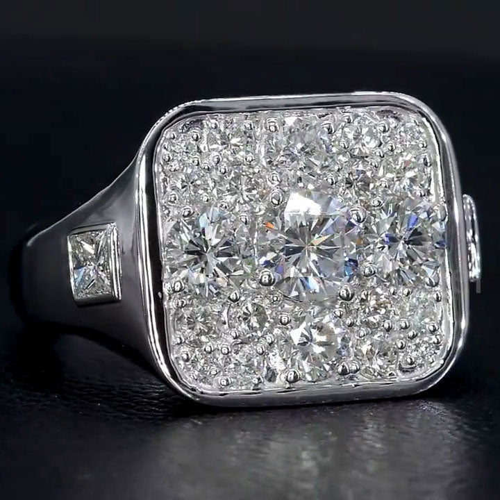This perfect modern style diamond ring is cluster set with round brilliant diamonds and has the most gorgeous square diamonds on the shoulders.The ring holder is made of 925 silver throughout and plated with thick gold. which makes the luster more long-lasting compared to other single-layer plating. The style is personalized and gorgeous. bringing more possibilities for your fashion collocation.