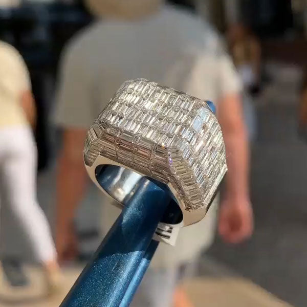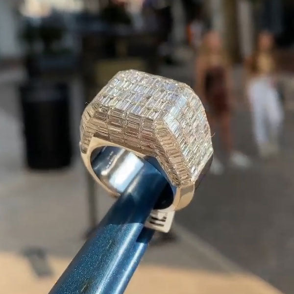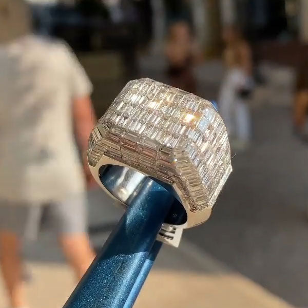 This diamond ring featuring baguette stones arranged in a stepped arrangement looks distinctive and brilliant.The ring holder is made of 925 silver throughout and plated with thick gold. which makes the luster more long-lasting compared to other single-layer plating. The style is personalized and gorgeous. bringing more possibilities for your fashion collocation.