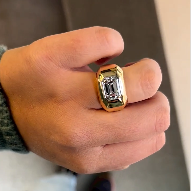 This is a minimalist design engagement ring for men and women. 9.5 ct octagonal cut white main stone is clean and bright. The bezel wrap setting is secure. The ring is made of 925 silver throughout. with thick gold plating. which makes the luster last longer compared to other single layer plating. The style is retro and simple. bringing more possibilities for your fashion collocation.