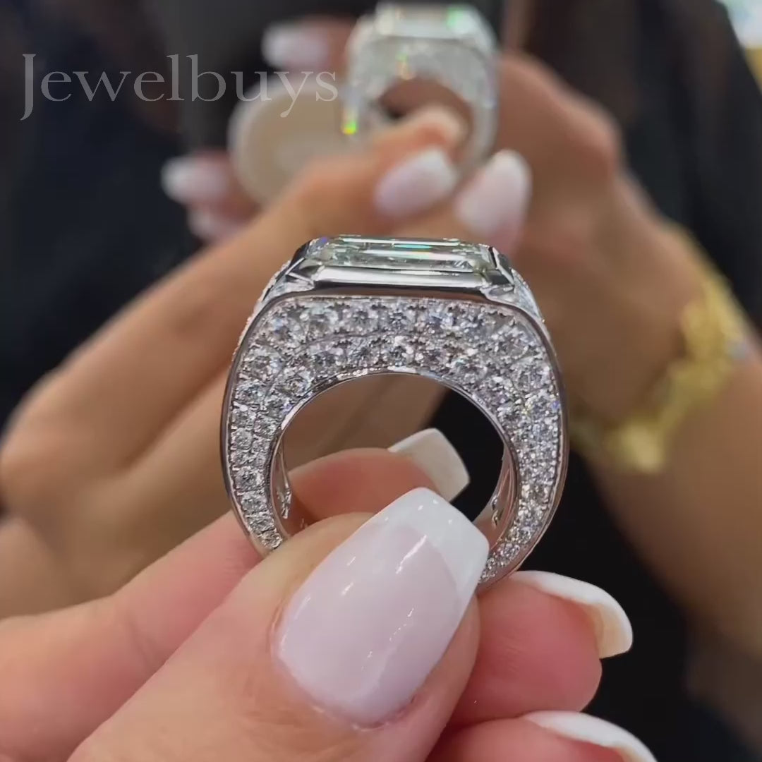 Sparkling Emerald Cut Pave Diamond Engagement Ring - JEWELBUYS