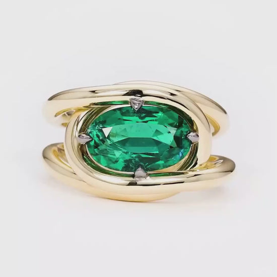 Stylish 5.8ct Oval Cut Emerald Split Shank Engagement Ring-JEWELBUYS