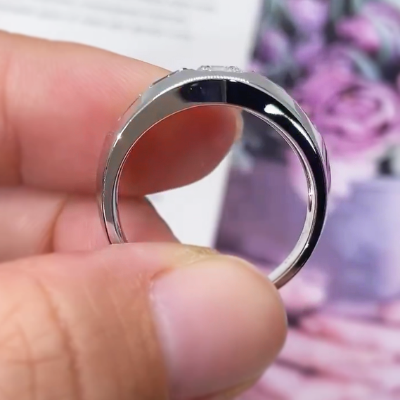 This ring has a simple and stylish design. The craftsmanship is exquisite and delicate. Perfect for daily matching. The center features a bright octagonal cut white main stone. The sides are combined with special cut white stones. Total weight is approximately 5 carats. The ring is made of 925 silver throughout. with thick gold plating. which makes the luster last longer compared to other single layer plating. The style is personalized and simple. bringing more possibilities for your fashion collocation.