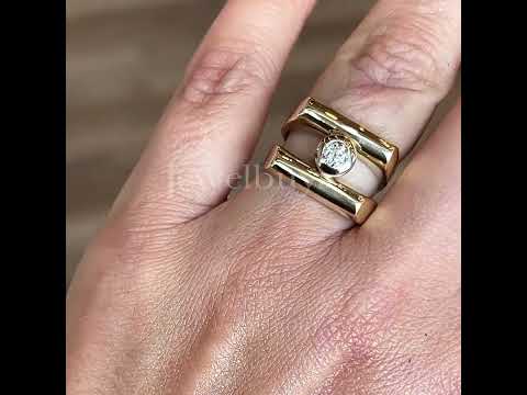 This modern Cocktail Ring in Yellow Gold is a unique and eye-catching piece that is sure to dazzle. Crafted in yellow gold and silver, the bezel set center stone is a one-of-a-kind. The vintage round cut stone weighs 1ct. Polished yellow gold is sculpted in a stylish and unique design, giving it a sophisticated and modern feel. The perfect statement piece for any occasion, this ring is sure to turn heads! A modern masterpiece.