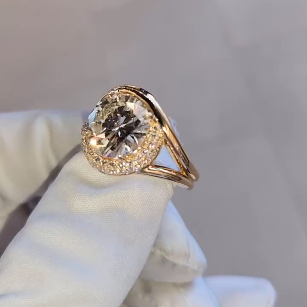 Wearable 4ct Round Cut White Sapphire Pave Forms Women's Engagement Ring in Gold-JEWELBUYS